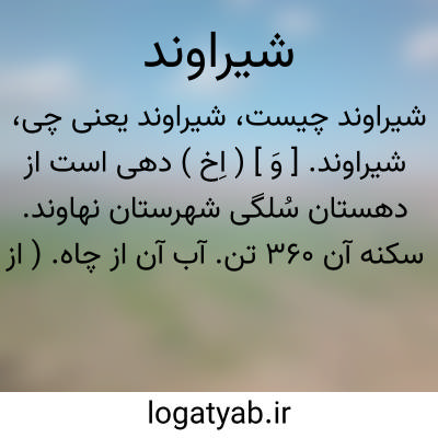 شیراوند. [ وَ ] ( اِخ ) دهی است از دهستان سُلگی شهرستان نهاوند. سکنه آن 360 تن. آب آن از چاه. ( از فرهنگ جغرافیائی ایران ج 5 ).