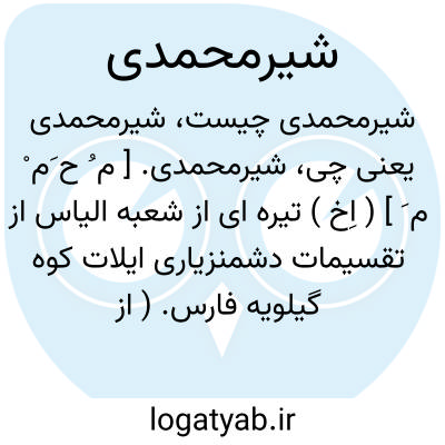 شیرمحمدی. [ م ُ ح َم ْ م َ ] ( اِخ ) تیره ای از شعبه الیاس از تقسیمات دشمنزیاری ایلات کوه گیلویه فارس. ( از جغرافیای سیاسی کیهان ص 89 ).