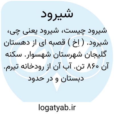 شیرود. ( اِخ ) قصبه ای از دهستان گلیجان شهرستان شهسوار. سکنه آن 860 تن. آب آن از رودخانه تیرم. دبستان و در حدود چهل باب دکان دارد. بنای معصوم زاده آن قدیمی است. مرکز حوزه 2 آمار گلیجان است. این قصبه ازدو محل بالا و پایین تشکیل شده و ده گرگ رود بین این دو محل واقع است. ( از فرهنگ جغرافیائی ایران ج 3 ).