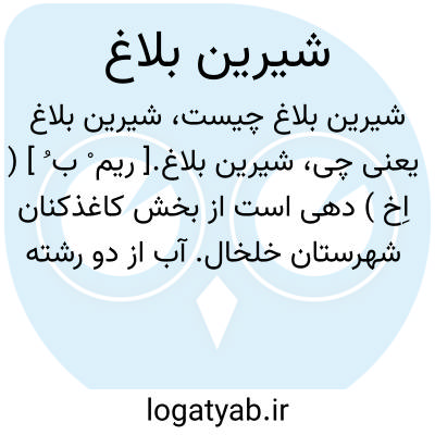 شیرین بلاغ (نیر). شیرین بلاغ یا شاهبلاغی یک روستا در ایران است که در استان اردبیل شهرستان نیر دهستان رضاقلی قشلاق واقع شده است. شیرین بلاغ ۵۷ نفر جمعیت دارد.