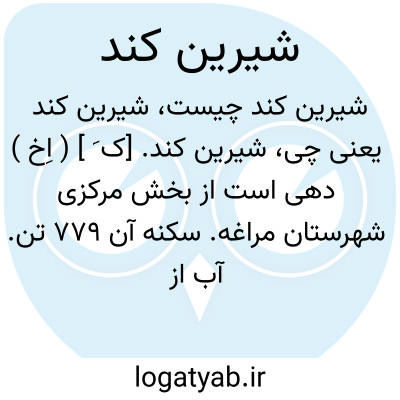شیرین کند. [ک َ ] ( اِخ ) دهی است از بخش مرکزی شهرستان مراغه. سکنه آن 779 تن. آب از رودخانه گیلان. صنایع دستی آنجا جاجیم بافی است. ( از فرهنگ جغرافیائی ایران ج 4 ).