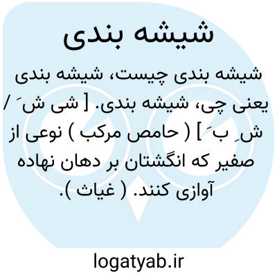 شیشه بندی. [ شی ش َ / ش ِ ب َ ] ( حامص مرکب ) نوعی از صفیر که انگشتان بر دهان نهاده آوازی کنند. ( غیاث ). شیشه بند کردن. سر انگشتی در بن ابهام حلقه کردن و انگشتان دیگر را خم دادن و بر دهان گذاشتن و آوازی برآوردن برای خجل ساختن کسی را. ( آنندراج ). شیشکی بستن. ( یادداشت مؤلف ). رجوع به شیشکی و شیشه بند شود.