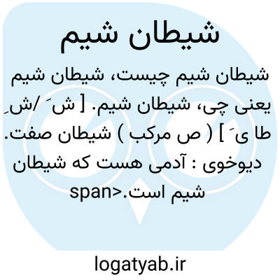 لغت نامه دهخدا شیطان شیم. [ ش َ /ش ِ طا ی َ ] ( ص مرکب ) شیطان صفت. دیوخوی: آدمی هست که شیطان شیم است.خاقانی.رجوع به شیطان صفت شود.