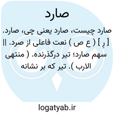 صارد. [ رِ ] ( ع ص ) نعت فاعلی از صرد. || سهم صارد؛ تیر درگذرنده. ( منتهی الارب ). تیر که بر نشانه بگذرد. ( مهذب الاسماء ). || ( اِخ ) نام شمشیر عاصم بن ثابت بن ابی افلح است. || بنوالصارد؛ قومی است از عرب. ( منتهی الارب ).