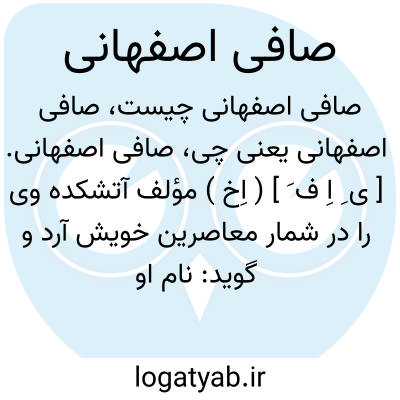 صافی اصفهانی. [ ی ِ اِ ف َ ] ( اِخ ) مؤلف آتشکده وی را در شمار معاصرین خویش آرد و گوید: نام او میرزا جعفر و از سادات رفیعالدرجات اصفهان و جوانی خلیق و مهربان و شاعر شیرین زبان است. طبعی بسیار خوش داشت. صحبت وی مکرر اتفاق افتاده. این اشعار از اوست: