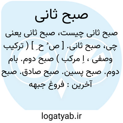 لغت نامه دهخدا صبح ثانی. [ ص ُ ح ِ ] ( ترکیب وصفی، اِ مرکب ) صبح دوم. بام دوم. صبح پسین. صبح صادق. صبح آخرین: فروغ جبهه صاحب قرانیست گواه صبح اول صبح ثانیست.میرزا جلال طباطبا.رجوع به صبح پسین شود.