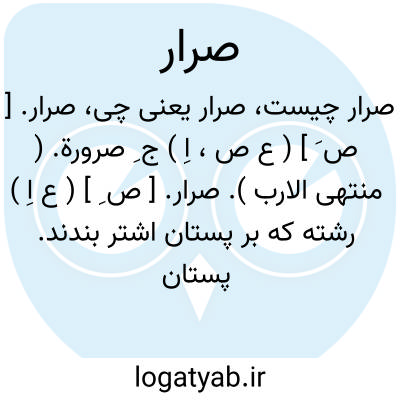 صرار. [ ص ِ ] ( ع اِ ) رشته که بر پستان اشتر بندند. پستان بند ناقه. ج، اَصِرَّة. ( منتهی الارب ). || جایهای بلند. ( منتهی الارب ).