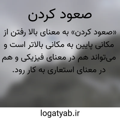 «صعود کردن» به معنای بالا رفتن از مکانی پایین به مکانی بالاتر است و میتواند هم در معنای فیزیکی و هم در معنای استعاری به کار رود. در کاربرد فیزیکی، این واژه معمولاً برای حرکت به سمت ارتفاع بالاتر مانند صعود کوه، پلکان یا هر مسیر شیبدار استفاده میشود. «صعود کردن» نشاندهنده تلاش، حرکت رو به بالا و غلبه بر موانع طبیعی است و در این معنا با فعالیتهای ورزشی و کوهنوردی مرتبط است. در معنای استعاری، «صعود کردن» میتواند به ترقی، پیشرفت، ارتقا مقام یا بهبود وضعیت فرد در زندگی یا کار اشاره داشته باشد. این کاربرد استعاری در متون ادبی، مدیریتی و آموزشی دیده میشود و به مفهوم رشد، پیشرفت و رسیدن به جایگاه بالاتر اشاره دارد. صعود کردن همواره با تلاش، پایداری و غلبه بر سختیها همراه است و نشاندهنده پویایی و حرکت مثبت است.