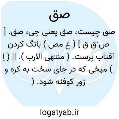 صق. [ ص َق ق ] ( ع مص ) بانگ کردن آفتاب پرست. ( منتهی الارب ). || ( اِ ) میخی که در جای سخت به کره و زور کوفته شود. ( منتهی الارب ). || در اصطلاح تجوید علامت خاصه است برای وقف، اما بشرط وصل قبل.