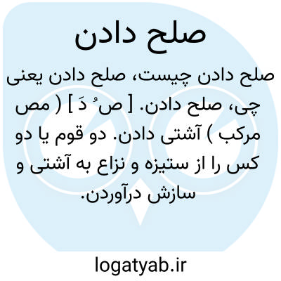 صلح دادن. [ ص ُ دَ ] ( مص مرکب ) آشتی دادن. دو قوم یا دو کس را از ستیزه و نزاع به آشتی و سازش درآوردن. رجوع به صلح شود.