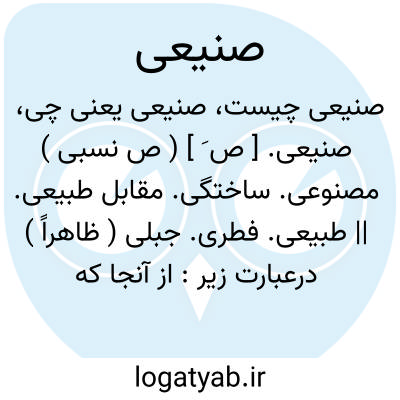 صنیعی. [ ص َ ] ( ص نسبی ) مصنوعی. ساختگی. مقابل طبیعی. || طبیعی. فطری. جبلی ( ظاهراً ) درعبارت زیر: از آنجا که الف طبیعی و عشق صنیعی و شفقت اصلی و رأفت جبلی بود خواست که درشود... ( سندبادنامه ص 116 ). اگر چند میان من و خوک مباینتی طبیعی و مباعدتی صنیعی است... ( سندبادنامه ص 167 ).