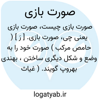 صورت بازی. [ رَ ] ( حامص مرکب ) صورت خود را به وضع و شکل دیگری ساختن، بهندی بهروپ گویند. ( غیاث اللغات ). عمل صورت باز. رجوع به صورت باز شود.