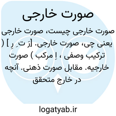 صورت خارجی. [رَ ت ِ رِ ] ( ترکیب وصفی، اِ مرکب ) صورت خارجیه. مقابل صورت ذهنی. آنچه در خارج متحقق شود خواه جوهر باشد و قائم بذات خود و یا عرض باشد در محلی غیر ذهن.