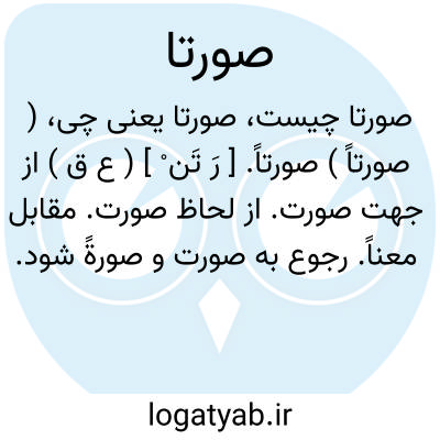 ( صورتاً ) صورتاً. [ رَ تَن ْ ] ( ع ق ) از جهت صورت. از لحاظ صورت. مقابل معناً. رجوع به صورت و صورةً شود.