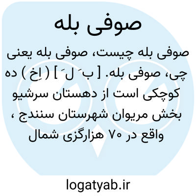 صوفی بله. [ ب َ ل َ ] ( اِخ ) ده کوچکی است از دهستان سرشیو بخش مریوان شهرستان سنندج، واقع در 70 هزارگزی شمال خاوری دژ شاهپور. دارای 50 تن سکنه است. ( از فرهنگ جغرافیائی ایران ج 5 ).