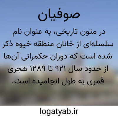 صوفیان. ( اِخ ) یکی از خانان خیوه است که از حدود 921 تا 1289 هَ. ق. حکومت داشتند. رجوع به ترجمه طبقات سلاطین اسلام ص 249 شود.