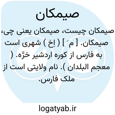 صیمکان. [ م َ ] ( اِخ ) شهری است به فارس از کوره اردشیر خرَّه. ( معجم البلدان ). نام ولایتی است از ملک فارس. ( برهان ). رجوع به صمکان و سیمکان شود.
