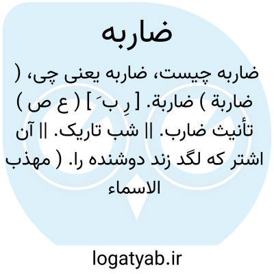 ( ضاربة ) ضاربة. [ رِ ب َ ] ( ع ص ) تأنیث ضارب. || شب تاریک. || آن اشتر که لگد زند دوشنده را. ( مهذب الاسماء ).