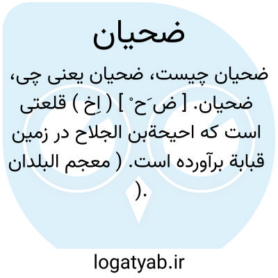 ضحیان. [ ض َح ْ ] ( ع ص ) رجل ٌ ضحیان؛ مردی که در وقت چاشت خورد. || یوم ٌ ضحیان؛ روز روشن. || سراج ٌ ضحیان؛ چراغ منیر. ( منتهی الارب ).