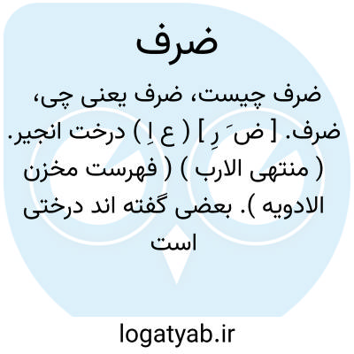 ضرف. [ ض َ رِ ] ( ع اِ ) درخت انجیر. ( منتهی الارب ) ( فهرست مخزن الادویه ). بعضی گفته اند درختی است کوهی در بزرگی و در برگ مانا بدرخت اثاب. بار آن سپید مدور و پهن، مانند تین الحماط الصغار و تلخ. می شکنند آن را بدندان و میخورند آن را مردم و طیور و بوزنگان. ( منتهی الارب ).