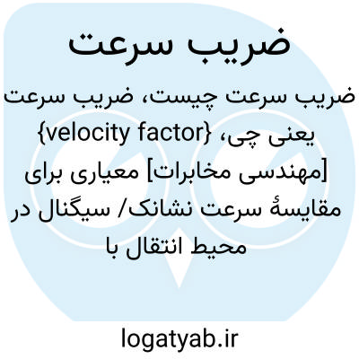 {velocity factor} [مهندسی مخابرات] معیاری برای مقایسۀ سرعت نشانک/ سیگنال در محیط انتقال با سرعت آن در هوای آزاد که به طور معمول تحت تأثیر مواد عایق و ساختار محیط انتقال است