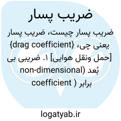 {drag coefficient} [حمل ونقل هوایی] 1. ضریبی بی بُعد (non-dimensional coefficient ) برابر با حاصل تقسیم پَسار کل بر فشار دینامیکی در مساحت سطح معرّف 2. ضریب نشان دهندۀ پَسار یک جسم برحسب نیوتن که بر مساحت یک مترمربع با سرعت یک کیلومتر در ساعت وارد می شود