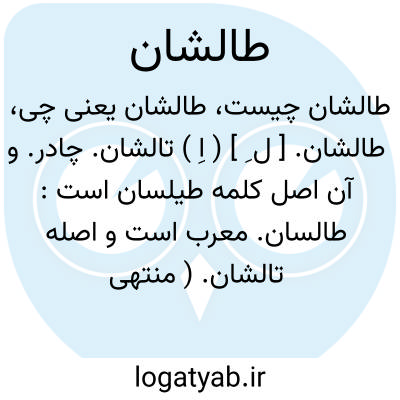 طالشان. [ ل ِ ] ( اِخ ) دهی است جزء دهستان حومه بخش مرکزی شهرستان رشت در چهارهزارگزی جنوب باختری رشت کنار راه شوسه لاکان. جلگه. معتدل مرطوب. مالاریائی. با 128 تن سکنه. آب آن از استخر. محصول آن برنج و چای. شغل اهالی زراعت و مکاری. راه آن مالرو است در فصل خشکی اتومبیل میرود. ( از فرهنگ جغرافیائی ایران ج 2 ).