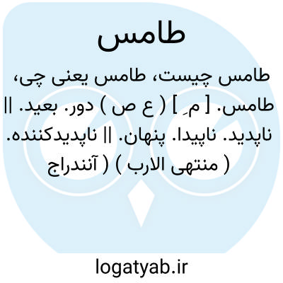طامس. [ م ِ ] ( ع ص ) دور. بعید. || ناپدید. ناپیدا. پنهان. || ناپدیدکننده. ( منتهی الارب ) ( آنندراج ). محوکننده. || رجل طامس القلب؛ مرد دل مرده. ( منتهی الارب ) ( آنندراج ).