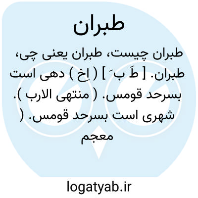 طبران. [ طَ ب َ ] ( اِخ ) دهی است بسرحد قومس. ( منتهی الارب ). شهری است بسرحد قومس. ( معجم البلدان ). طابران. یکی از دو شهری بود که مجموع آنها را طوس مینامیده اند. و شهر دیگر نوقان بوده است. ( حواشی چهارمقاله عروضی ص 47 ). و طابران را طبران نیز گفته اند. رجوع به طابران شود. || در سابق نزدیک دروازه اصفهان نیز جائی موسوم به «طبران » بوده: الی ان وصلنا الی طبران، علی باب اصبهان. ( عیون الانباء ج 2 ص 6 ). رجوع به تاریخ الحکماء قفطی چ لیپسیک ص 421 شود.