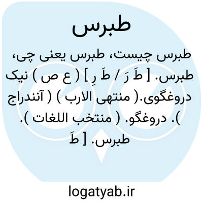 طبرس. [ طَ رَ / طَ رِ ] ( ع ص ) نیک دروغگوی.( منتهی الارب ) ( آنندراج ). دروغگو. ( منتخب اللغات ).