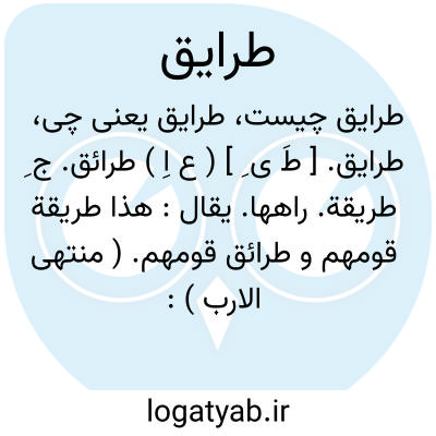 طرایق. [ طَ ی ِ ] ( ع اِ ) طرائق. ج ِ طریقة. راهها. یقال: هذا طریقة قومهم و طرائق قومهم. ( منتهی الارب ): چه تنفیذ شرایع دین و اظهار طرایق... بی سیاست پادشاه دیندار صورت نبندد. ( کلیله و دمنه ). || هؤلاء طرائق ُ قومهم، للرجال الاشراف. ( تاج العروس ). || قوله تعالی: کنا طرائق قدداً؛ ای فرقاً مختلفةٌ اهوائنا ( منتهی الارب )؛ ای اهواء مختلفة، و فرقاً شتی: ما بر هوای مختلف بوده ایم و بر راههای پراکنده، بهری مؤمن و بهری کافر، بهری منافق. ( قرآن 11/72، از تفسیر ابوالفتوح رازی ). || ( ص ) ثوب طرائق؛ جامه کهنه. ( منتهی الارب ). || ( اِ ) طرائق البیض؛ خطوطه التی تسمی الحبک. ( تاج العروس ).