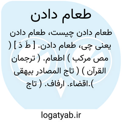 طعام دادن. [ طَ دَ ] ( مص مرکب ) اطعام. ( ترجمان القرآن ) ( تاج المصادر بیهقی ).اقضاء. ارفاف. ( تاج المصادر ). مید. ( منتهی الارب ).