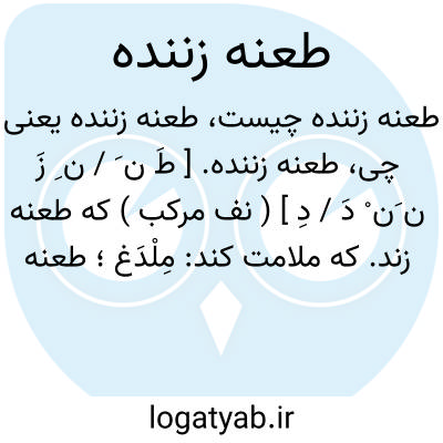 طعنه زننده. [ طَ ن َ / ن ِ زَ ن َن ْ دَ / دِ ] ( نف مرکب ) که طعنه زند. که ملامت کند: مِلْدَغ؛ طعنه زننده مردم را. ( منتهی الارب ).