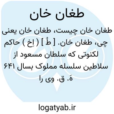 طغان خان. [ طُ ] ( اِخ ) حاکم لکنوتی که سلطان مسعود از سلاطین سلسله مملوک بسال 641 هَ. ق. وی را از حکومت لکنوتی برکنار کرد و قرابیک تیمورخان را بجای او به حکومت برقرار داشت. ( حبیب السیر چ خیام ج 2 ص 623 ).