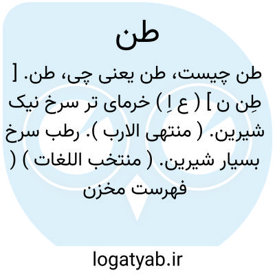 طن. [ طِن ن ] ( ع اِ ) خرمای تر سرخ نیک شیرین. ( منتهی الارب ). رطب سرخ بسیار شیرین. ( منتخب اللغات ) ( فهرست مخزن الادویه ).