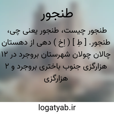 طنجور. [ طِ ] ( اِخ ) دهی از دهستان چالان چولان شهرستان بروجرد در 12 هزارگزی جنوب باختری بروجرد و 2 هزارگزی خاور شوسه بروجرد در جلگه، گرمسیر با 354 تن سکنه. آب آن از رودخانه و قنوات. محصول آنجا غلات و تریاک. شغل اهالی زراعت. راه آن شوسه است. ( فرهنگ جغرافیائی ایران ج 6 )