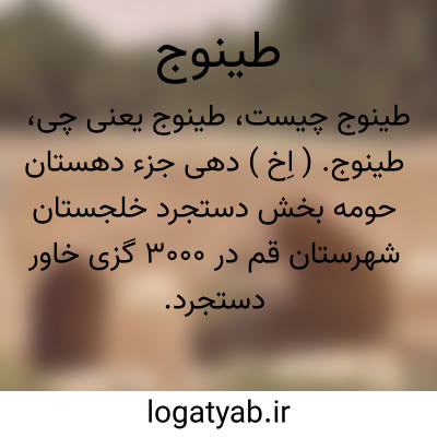 طینوج. ( اِخ ) دهی جزء دهستان حومه بخش دستجرد خلجستان شهرستان قم در 3000 گزی خاور دستجرد. کوهستانی و کنار رودخانه و سردسیر با 967 تن سکنه. آب آن از قنات و رودخانه. محصول آنجا غلات و بنشن وانگور و گردو و زردآلو و بادام. شغل اهالی زراعت است. دبستان، پل آجری روی رود جهرود و کاروانسرای شاه عباسی قدیمی دارد. راه قدیمی کاروان رو قم به همدان ازاین ده میگذشته است. ( فرهنگ جغرافیائی ایران ج 1 ).