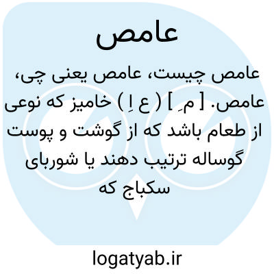 عامص. [ م ِ ] ( ع اِ ) خامیز که نوعی از طعام باشد که از گوشت و پوست گوساله ترتیب دهند یا شوربای سکباج که سرد نموده روغن دور سازند. ( منتهی الارب ) ( آنندراج ). و صاحب اقرب الموارد آرد: عامص طعامی است.