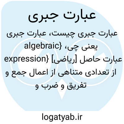 {algebraic expression} [ریاضی] عبارت حاصل از تعدادی متناهی از اعمال جمع و تفریق و ضرب و تقسیم و به توان رساندن بر روی نمادهایی که معرف اعدادند