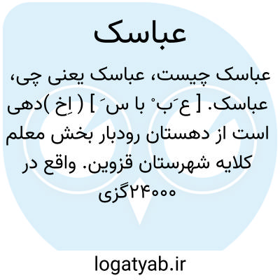 عباسک. [ ع َب ْ با س َ ] ( اِخ )دهی است از دهستان رودبار بخش معلم کلایه شهرستان قزوین. واقع در 24000گزی شمال باختری معلم کلایه و 60000گزی راه عمومی. کوهستانی و سردسیر است. 148 تن سکنه دارد. آب آن از چشمه سار تأمین میشود و محصول آن غلات، گردو و لوبیا است. شغل اهالی زراعت و گله داری است.راه مالرو دارد. ( از فرهنگ جغرافیائی ایران ج 1 ).