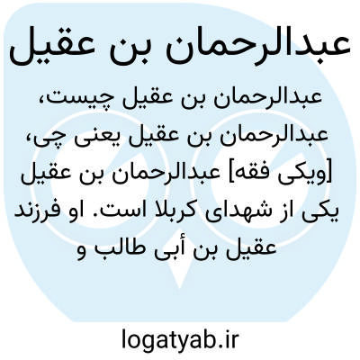 [ویکی شیعه] عبدالرحمان بن عقیل بن ابی طالب، داماد امام علی(ع) و از شهدای کربلا که در روز عاشورا توسط عثمان بن خالد بن اسیر جهنی و بشر بن سوط همدانی قابضی به شهادت رسید.