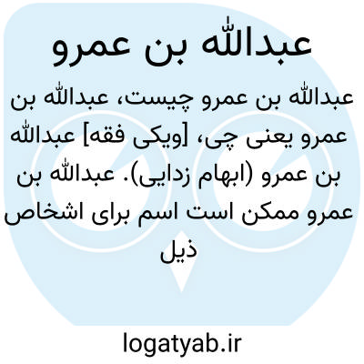 [ویکی فقه] عبدالله بن عمرو (ابهام زدایی). عبدالله بن عمرو ممکن است اسم برای اشخاص ذیل باشد: • عبدالله بن عمرو بن عیاش، بنابر نظر برخی مورخان، یکی از شهدای کربلا• عبدالله بن عمرو بن عاص، از تیره ی قریش و مادرش، ریطه دختر منبه بن حجاج