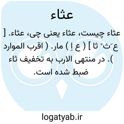 عثاء. [ ع َث ْ ثا ] ( ع اِ ) مار. ( اقرب الموارد ). در منتهی الارب به تخفیف ثاء ضبط شده است.