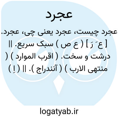 لغت نامه دهخدا عجرد. [ ع َ رَ ] ( ع ص ) سبک سریع. || درشت و سخت. ( اقرب الموارد ) ( منتهی الارب ) ( آنندراج ). || ( اِ ) نره. ( منتهی الارب ) ( آنندراج ).عجرد. [ ع َ ج َرْ رَ ] ( ع ص ) دلاور. ( منتهی الارب ). الجری ٔ. ( اقرب الموارد ). || برهنه. ( منتهی الارب ) ( آنندراج ). منجرد. ( اقرب الموارد ).