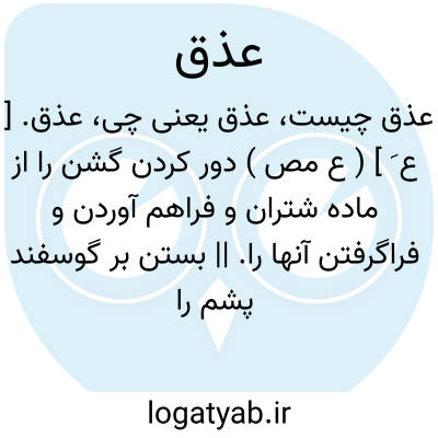 عذق. [ ع َ ] ( ع مص ) دور کردن گشن را از ماده شتران و فراهم آوردن و فراگرفتن آنها را. || بستن بر گوسفند پشم را بخلاف رنگ آن جهت نشان. ( منتهی الارب ) ( از اقرب الموارد ) ( از قطرالمحیط ). نشان کردن گوسفند. ( تاج المصادر بیهقی ). || دشنام دادن کسی را و تهمت کردن. ( منتهی الارب ). کسی را بعیبی معروف کردن. ( تاج المصادر بیهقی ). || نسبت دادن کسی را به چیزی. || بازآوردن. ( منتهی الارب ).بازبیاوردن. ( تاج المصادر ). || بریدن شاخهای خرما. ( منتهی الارب ) ( از قطرالمحیط ) ( تاج المصادربیهقی ). || ریخ زدن شتر. ( منتهی الارب ).