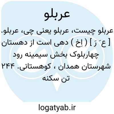 عربلو. [ ع َ رَ ] ( اِخ ) دهی است از دهستان چهاربلوک بخش سیمینه رود شهرستان همدان، کوهستانی. 244 تن سکنه دارد. شغل اهالی زراعت و گله داری است. صنایع دستی قالیبافی است. ( از فرهنگ جغرافیایی ایران ج 5 ).