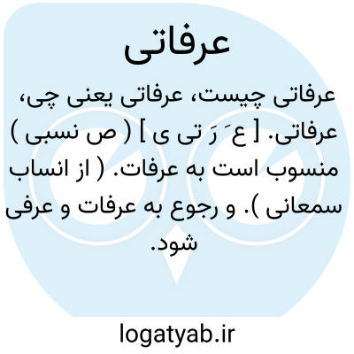 عرفاتی. [ ع َ رَ تی ی ] ( ص نسبی ) منسوب است به عرفات. ( از انساب سمعانی ). و رجوع به عرفات و عرفی شود.