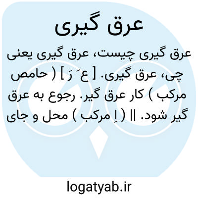 عرق گیری. [ ع َ رَ ] ( حامص مرکب ) کار عرق گیر. رجوع به عرق گیر شود. || ( اِ مرکب ) محل و جای گرفتن عرق. جایی که عرق میگیرند. رجوع به عرق و عرق گیر شود.