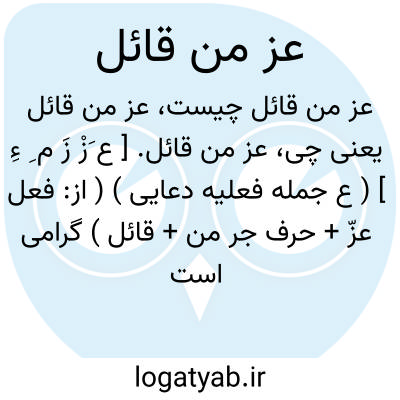 عز من قائل. [ ع َزْ زَ م ِ ءِ ] ( ع جمله فعلیه دعایی ) ( از: فعل عزّ + حرف جر من + قائل ) گرامی است گوینده. عزیز و ارجمند است آنکه گفته است، و آن را پیش از نقل آیتی از قرآن کریم آرند، قوله تعالی عزمن قائل... ( از یادداشت مرحوم دهخدا ). در این جمله حرف «من » زائد است و مجرور آن محلاً منصوب است بر تمییز بودن. و آن را بصورت عزّ قائلاً، بدون مِن نیز گویند. و آن را حال نیز میتوان فرض کرد بعنوان جنس بودن، یعنی عزّ قائلاً من القائلین. ( از اقرب الموارد ).
