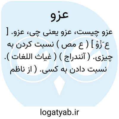 عزو. [ ع َزْوْ ] ( ع مص ) نسبت کردن به چیزی. ( آنندراج ) ( غیاث اللغات ). نسبت دادن به کسی. ( از ناظم الاطباء ) ( از اقرب الموارد ). به کسی بازخواندن. ( تاج المصادر بیهقی ). || نسبت پذیرفتن. ( از ناظم الاطباء ). منتسب شدن به کسی، براست یا به دروغ. ( از اقرب الموارد ). || شکیبائی کردن بر مصیبت. ( غیاث اللغات ) ( آنندراج ). و رجوع به عَزاء شود.